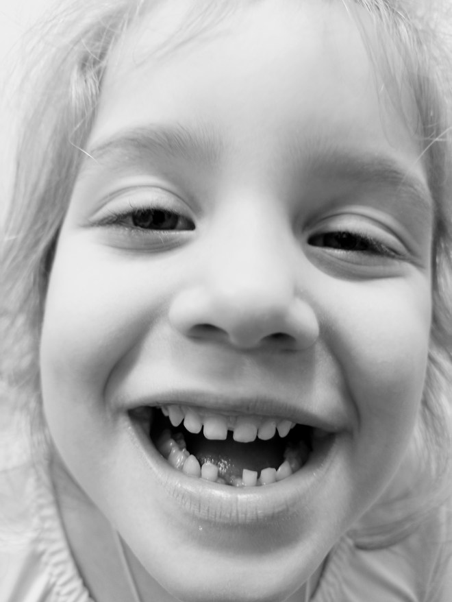 Zavírám PC, ale večer se k němu ještě vracím. Rozálčin zoubek vypadl. Vlastně byl vytrhnut. Byl to můj první vytržený mléčný zub z cizí pusy a byla to hračka. Rozálka měla obrovskou radost, kterou potřebovala sdílet. Poslaly jsme foto na FB, babičkám a dědovi, strejdům, kamarádovi do čtvrtého i třetího patra. Rozálka toužila po kontaktu i s učitelkami, ale tam bohužel spojení nemám. Říkala, že vydrží do pondělí, kdy by už mohla do školky. Ze zoubku se stala velká sláva večera. Byl uložen do maličkého přívěšku na krk. S přívěškem Róza chrastila, aby se ujistila, že je zub stále uvnitř, ačkoli ji celou dobu visel na krku. Hrdě se prohlížela v zrcadle, hodnotila své šišlání slovy „To je doblý, vůbec mi nedělá potíše mluvit,“ a její štěstí a pýcha na sebe samu byly tak obrovský a všudypřítomný, že se člověku zdálo, že už to není prcek. Zase. Nedávno jsme fotili její první prořezávající se mléčný zub, dneska fotíme, jak vypadává. A to mám v živé paměti první vypadávání mléčného chrupu u první dcery. Je to emočně náročný večer. Ale je naplněný láskou a energií, která mi zase do ruky vrazila žehličku. Už to s tou iniciativou převzít manželovi povinnosti a nechat jej oddychnout přeháním. Slíbím si, že tohle je moje poslední žehlení na dlouhou dobu. Mám ostatně plán na produktivnější činnosti.